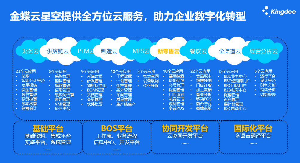 金蝶云·星空秉持流程驅(qū)動(dòng)與角色驅(qū)動(dòng)思想,通過(guò)數(shù)據(jù)和智能助力高成長(zhǎng)型企業(yè)韌性成長(zhǎng),幫助企業(yè)從ERP資源計(jì)劃力向,EBC數(shù)字戰(zhàn)斗力轉(zhuǎn)變,實(shí)現(xiàn)數(shù)字化轉(zhuǎn)型以及管理重構(gòu)。